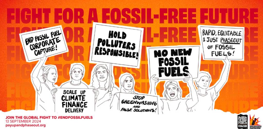 A medida que nos acercamos a la COP 29, los problemas de la financiación climática y la eliminación gradual de los combustibles fósiles hacia una transición energética justa son cada vez más críticos para la acción climática. La próxima Asamblea General de la ONU, la Cumbre del Futuro de la ONU y la Cumbre Mundial de Energías Renovables, que tendrán lugar una tras otra en septiembre, brindan una oportunidad importante para reiterar nuestras demandas y aumentar la presión pública para obligar a los gobiernos, las instituciones internacionales y las corporaciones a escuchar y tomar medidas.